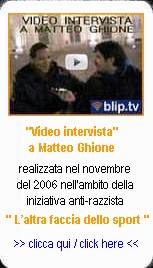 promossa da Uisp, Progetto Ultrà ed il settimanale Carta, insieme alla Rete Fare, la nuova campagna intitolata "Antirazzisti Mondiali. Tante tattiche una sola squadra". Il primo passo della Campagna è la presentazione dello spazio internet www.uisp.it/antirazzistimondiali(è anche su www.carta.org) in cui trovate tra l' altro, un' intervento del sociologo Mauro Valeri dedicato ai pregiudizi ed agli slogan razzisti e uno di Matteo Ghione, giovane calciatore italo-brasiliano della "Primavera" della Juventus, dedicato a Garrincha, Cpt e sogni antirazzisti. (...)(leggi)